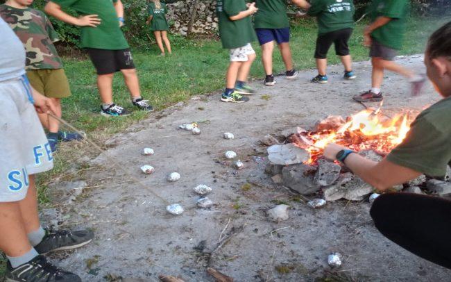 Dopoldanski čas so otrokom popestrila tabornika, katera sta opisala pomen in vlogo taborništva. Učenje skozi delo, sobivanje z naravo, spoznavanje narave in jo spoštovati, simbolni okvir z običaji, življenjem s taborniško prisego in zakoni. Naučili so se pripraviti več vrst ognjev. Že prej pripravljena ognjišča z lovko so otroci popravili postavi po taborniškem zaporedju. Zvečer so zakurili kres, si spekli krompir in marshmallow.
